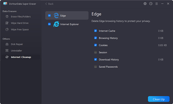 DoYourData Super Eraser can help you clean up all internet junk files and traces.