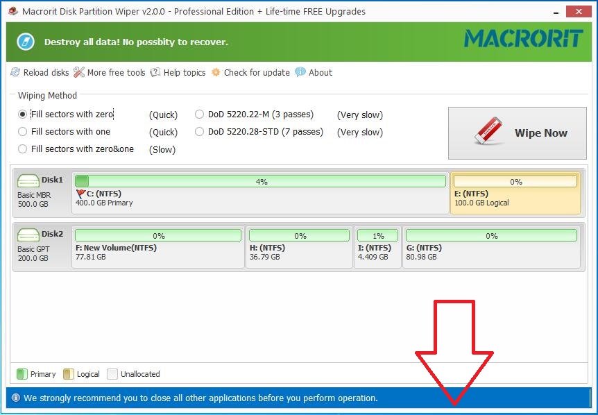 Se vuoi pulire i dati dal tuo disco fisso, formattare o cancellare il disco rigido non è abbastanza per evitare che le tue informazioni personali o i documenti aziendali vengano recuperati. Quello di cui hai bisogno è un programma professionale per cancellare dati il maniera completa e permanente dal disco rigido o da una partizione. Macrorit Disk Partition Wiper è un programma che pulisce il disco nuovissimo che ti aiuta a pulire il drive del disco fisso da dentro fuori.