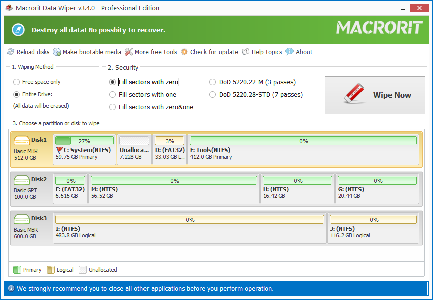 Grazie ad algoritmi potenti e capacità avanzate di pulizia del disco, Macrorit Disk Partition Wiper fornisce una soluzione semplice ed efficace per distruggere in modo permanente i dati e renderli irrecuperabili.