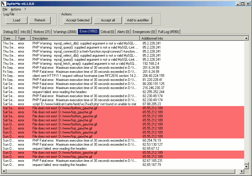 ApHeMo è un Analizzatore per il Monitoraggio della Salute per Apache HTTP Server. ApHeMo permette agli amministratori di migliorare la sicurezza, l'affidabilità e di individuare facilmente gli attacchi da part ed i hacker (scansioni, backdoor potenziali...). ApHeMo è un tool da avere assolutamente per gli amministratori di server dedicati.