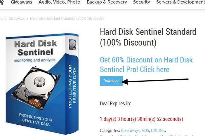Per ottenere una licenza gratuita di Hard Disk Sentinel Standard, andare in questa pagina.
