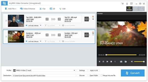 Questo programma offre una nuova funzione migliorata per permetterti di migliorare la qualità video. Ti offre una grafica chiara e pulita per aumentare la risoluzione e rimuovere il rumore video. In più, è in grado di tagliare/combinare/ruotate/trasformare in 3D/aggiungere il watermark/editare gli effetti video e audio a tuo piacimento.
