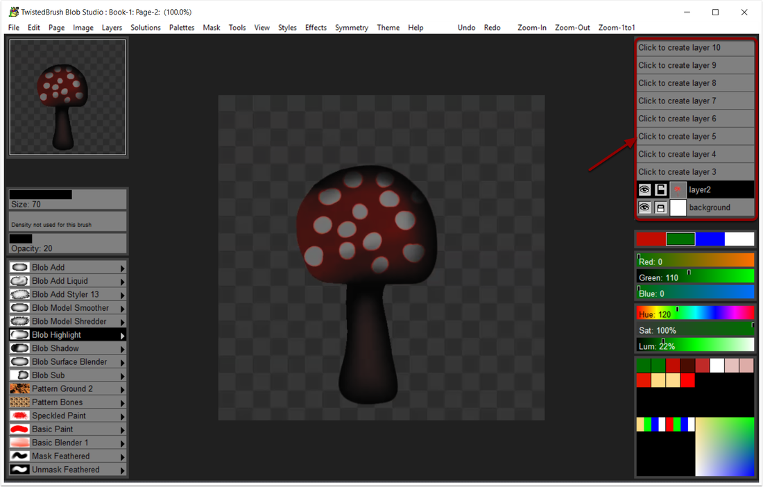 Blob Studio è un prodotto nato da TwistedBrush Pro Studio ma concentrato sulla creazione di oggetti individuali che potresti utilizzare in altri programmi Pro Studio o programmi d'arte e con una interfaccia più semplice e diretta.