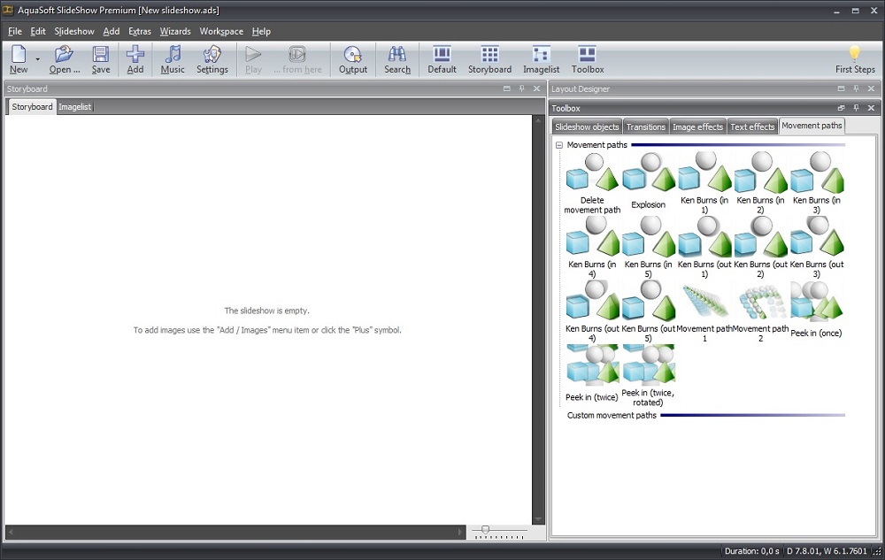 - Live preview within the Layoutdesigner: See particle objects and effects while editing your slideshow