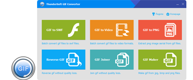 ThunderSoft GIF Converter è una toolbox GIF quattro in una. Ti permette di convertire GIF in video SWF, formati file PNG e può anche invertire file GIF animati. Questo programma offre una interfaccia utente facile da utilizzare, ricche impostazioni dei risultati e una rapida conversione in alta qualità. Tutte le funzioni supportano la conversione in modalità batch co u semplice click, ti aiuta ad affrontare grandi numeri e qualsiasi tipo di conversione file GIF.