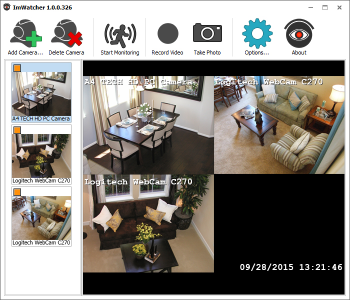 ImWatcher è un sistema di videosorveglianza con supporto per diverse webcam e camere IP. È in grado di monitorare e registrare da qualsiasi camera simultaneamente, e vedere in anteprima diverse camere in una singola finestra. Ogni camera ha le proprie impostazioni di monitoraggio e di registrazione. Quando viene rilevato un movimento, è in grado di registrare oppure scattare foto.