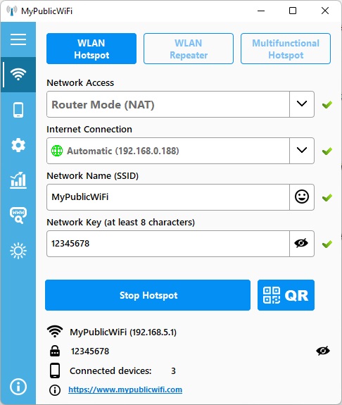 Oraa sarà sufficiente ricercare la rete Wifi creata dal PC o dallo smartphone ed inserire la password creata. Potremo inoltre vedere dall'app i dispositivi connessi con tanto di MAC ed IP assegnato ma anche avere un controllo completo su chi si connette dove avremo la possibilità di inibire il file sharing e il peer to peer grazie all'utilizzo di un firewall ma anche visualizzare un file di log.