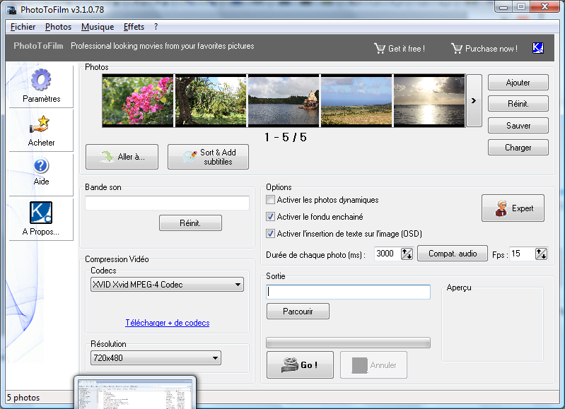PhotoToFilm è un compagno perfetto per tutti coloro che utilizzano una camera digitale. Con PhotoToFilm, puoi facilmente fare piccoli filmati delle tue foto e comprimerli (p.e.: utilizzando DivX) per distribuire la tua produzione ai tuoi amici e alla tua famiglia. PhotoToFilm ti permette di aggiungere effetti dall'aspetto professionali con pochi click e rende la creazione di video un gioco.