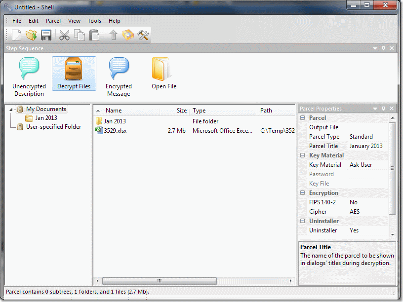 Silver Key produce file criptati (o pacchetti) ideali per l’invio di dati sensibili su un canale insicuro come Internet. I pacchetti creati da Silver Key sono autoestraenti, quindi il corrispondente che si trova dall’altra parte non ha bisogno di installare alcun software per decodificarli. La creazione di un file cifrato con questo programma è incredibilmente facile. Tutto quello che dovete fare è fare clic su un file o una cartella e selezionare ‘Create Parcel’ dal menu. Silver Key produrrà un file crittografato distribuibile su un server Internet, sulla rete locale o semplicemente via email. Silver Key utilizza l’Advanced Encryption Standard per proteggere i dati degli utenti con una chiave di crittografia a 256 bit di gran lunga superiore ai requisiti HIPAA.
