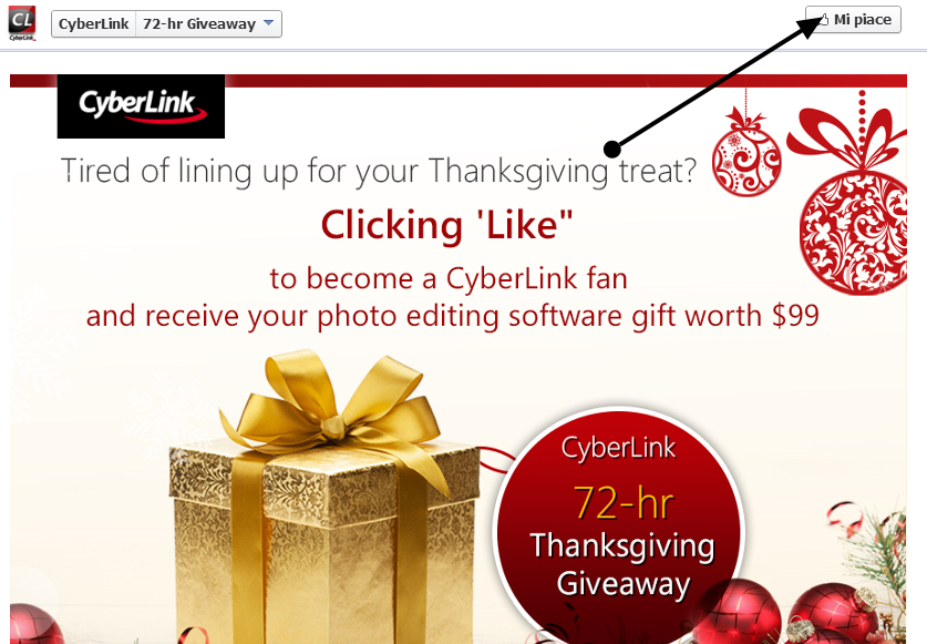 Per ottenere una licenza gratuita di CyberLink PhotoDirector 4, andare nella pagina promozionale Facebook e fare clic su Mi piace.