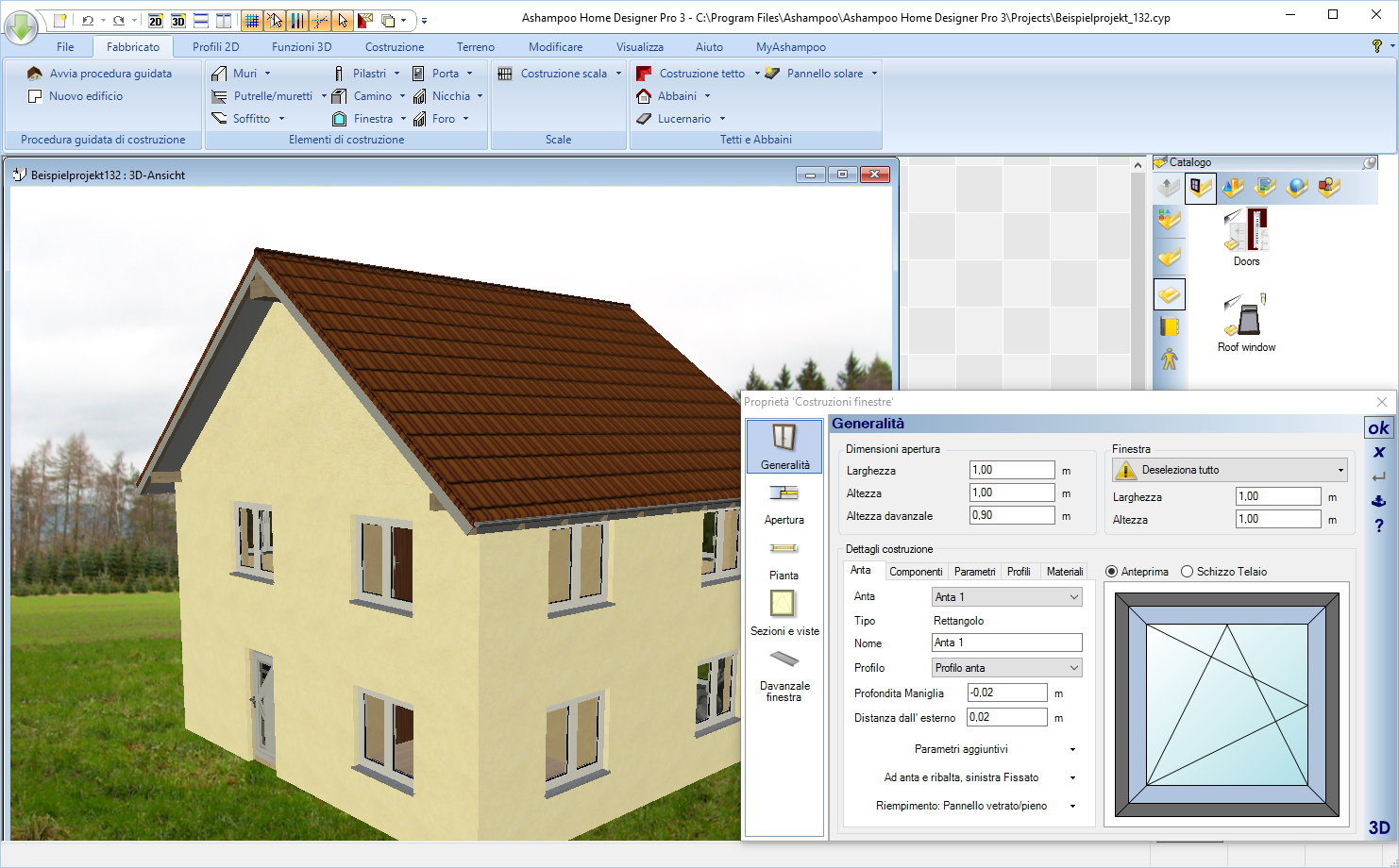 - 3 viste di progetto: 2D, 3D, sezione trasversale
