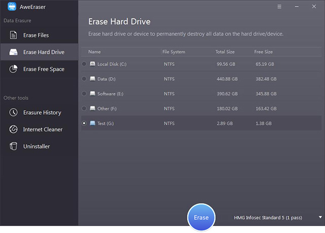 Una volta che i dati privati finiscono nelle mani sbagliate, le conseguenze sarebbero inimmaginabili. AweEraser, il programma affidabile per cancellare i dati, può aiutarti a cancellare i dati privati prima di rivendere, donare, dare via, prestare oppure abbandonare il tuo computer oppure il tuo dispositivo di memoria, oltre alo scopo di recuperare i dati.