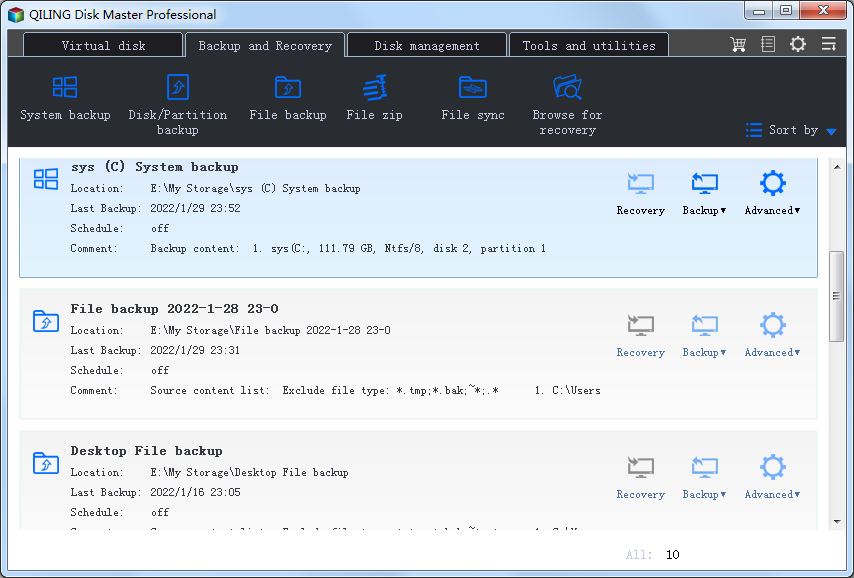 Fare backup di dati importanti su WindowsQILING Disk Master Professional non è solo una soluzione affidabile per un backup e recupero rapido, ma è anche un programma per gestire il ramdisk e le partiz...