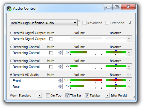 Audio Control è una utility per il controllo audio del computer, ed è una sostituzione migliorata per il controllo del Volume Standard di Windows. Audio Control mostra i dispositivi audio su un PC e i loro controlli audio, in modo agevole per poterli visualizzare e operare. Ergonomico e funzionale, Audio Control è progettato per permettere tutti i tipi di personalizzazione per risparmiare spazio sull’area di lavoro dello schermo e sulla barra delle applicazioni e, allo stesso tempo, permettere all’utente di operare sui dispositivi audio nella maniera più facile ed efficiente possibile.