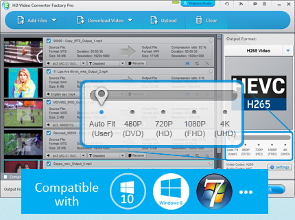 HD Video Converter Factory Pro è dotato di funzioni avanzate per la conversione di video HD. Permette agli utenti a convertire i video da Standard Definition ( SD) ad High Definition ( HD) e vice versa. Supporta oltre 100 formati di file video e può convertire quasi tutti i formati video SD e HD più popolari.