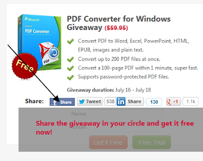 Per usufruire dell’offerta dovete andare al sito Web linkato al fondo dell'articolo condividere l'articolo su Facebook o Twitter utilizzando gli appositi pulsanti presenti sopra i box di ricerca, inserire il nome e la vostra Mail per ottenere la licenza e attivare gratuitamente iSkysoft PDF Converter for Windows con il seriale ricevuto.