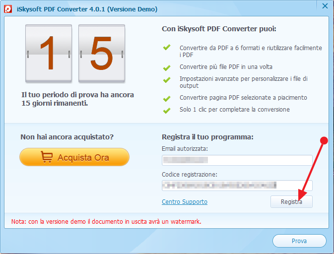 iSkysoft PDF Converter Gratis con Licenza: Converti PDF in file Word, Excel, PowerPoint modificabili su Windows