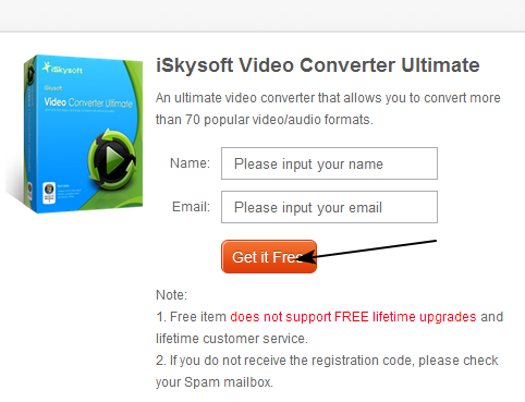 Per ottenere una licenza gratuita di iSkysoft Video Converter Ultimate, andare in questa pagina e inserire il nome e la vostra email.