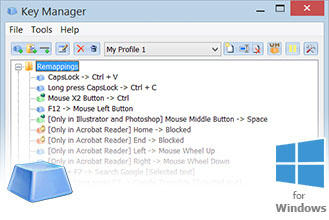 Key Manager ti permette di rimappare le combinazioni di trasti e pulsanti del mouse, le sequenze dei tasti e pulsanti del mouse, e le lunghe pressioni (premi e tieni giù).