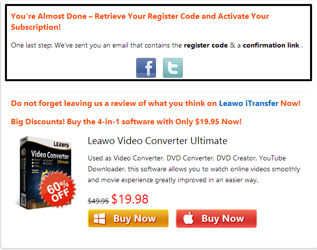 Per ottenere una licenza gratuita di Leawo iTransfer, andare in questa pagina.