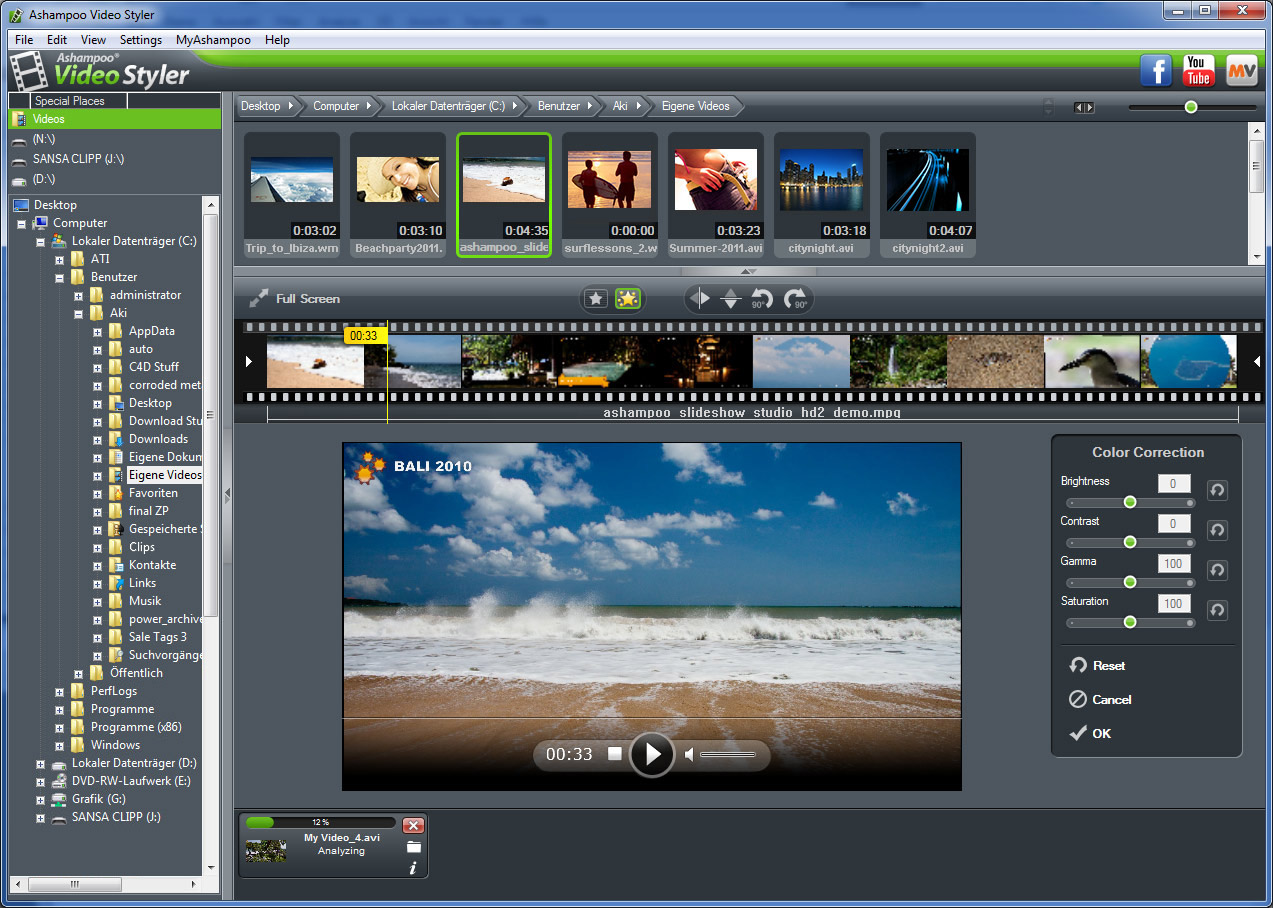 Si possono applicare ad esempio i numerosi filtri o aggiungere un sottofondo musicale al tuo video per renderlo perfetto per un ricordo indimenticabile. I film modificati con stile possono essere esportati in diversi formati tra i tanti supportati in modo da riprodurlo in maniera corretta con qualsiasi dispositivo vogliate. La cosa interessante è che con pochi clic, puoi facilmente condividere il video con i tuoi amici o al mondo intero su YouTube o creare video in formato adatto per MyVideo o Facebook. Con Ashampoo Video Styler, potente e orientato all'utente, rendi i tuoi video qualcosa di speciale e che impressioni gli altri con risultati brillanti.