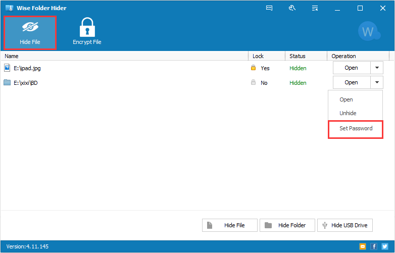 Wise Folder Hider Pro è in grado di nascondere file e cartelle su partizioni locali oppure dispositivi removibili. I file saranno nascosti in maniera sicura grazie all'algoritmo di crittografia avanzato. Puoi impostare una password così che i dati nascosti possono essere visualizzati e svelati solo inserendo la password corretta. I dati sono completamente invisibili agli altri programmi oppure su altri sistemi operativi, per cui è molto più affidabile.