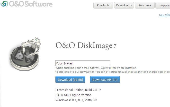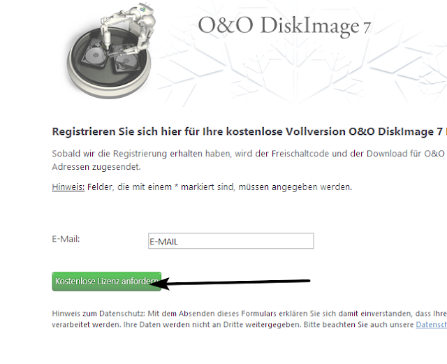 Per ottenere una licenza gratuita di O&O DiskImage 7 Professional Edition, andare in questa pagina e inserire la vostra e-mail.