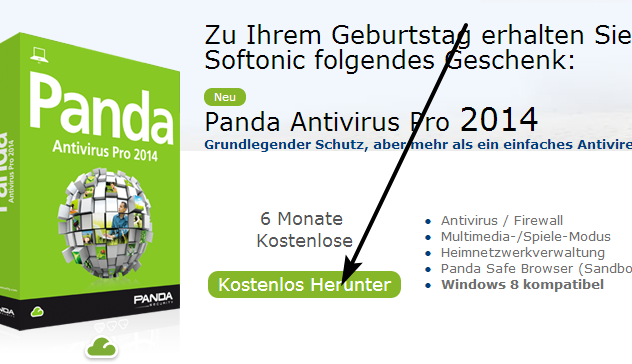 Per ottenere una licenza gratuita di Panda Antivirus Pro 2014, andare in questa pagina e scaricare l’antivirus. Nota: sappiate che se avete già usato una versione di prova di Panda Antivirus Pro 2014 sul vostro sistema operativo Windows, non sarete in grado di attivare questa versione speciale valida per 180 giorni.