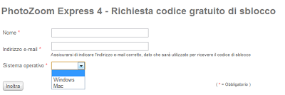 Per ottenere una licenza gratuita di PhotoZoom Express 4, andare in questa pagina e inserire i dati richiesti.