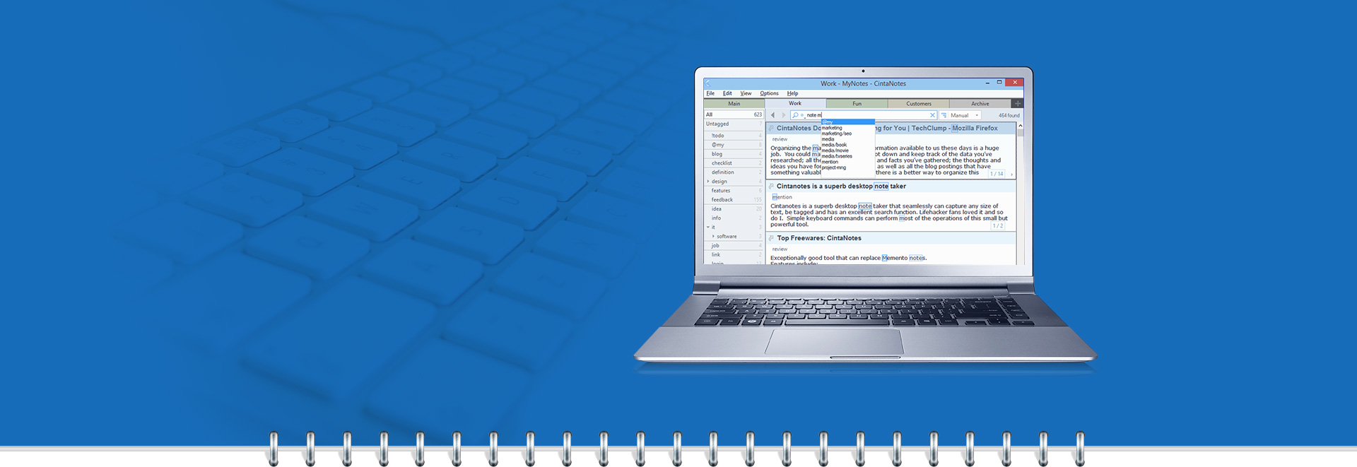 CintaNotes è una applicazione per prendere e gestire appunti e creare basi di conoscenza personale. È ergonomico, discreto e sembra integrato nel sistema. Basta selezionare un po' di testo, premi l'hot key, ed è già in CintaNotes.