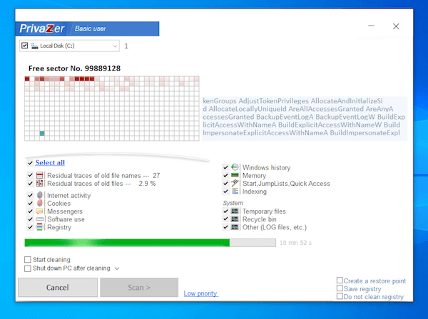Privazer elimina file inutili dal disco fisso di Windows, libera spazio nella memoria interna e protegge la nostra privacy cancellando ogni traccia