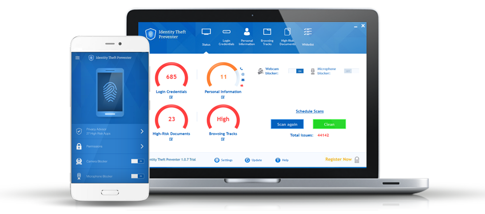 - Identity Theft Preventer presta attenzione a centinaia di micro-parametri su un computer, alla ricerca di dati esposti che possono potenzialmente danneggiare l'identità. Le informazioni inserite e archiviate dai browser, come le credenziali di accesso, i servizi di web mail, i portali di banking, i web account di fornitori medici, e i social network come anche le informazioni di fatturazione raccolte, come i numeri delle carte di credito, le informazioni di previdenza sociale, l'indirizzo di casa e molto altro – sono tutti considerati potenziali problemi di privacy per il consumatore e possono essere risolti con un click.