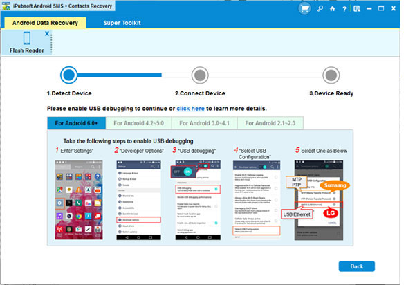iPubSoft Android SMS+Contacts Recovery recupera direttamente i messaggi e i contatti smarriti o cancellati dai telefoni mobili Android. Ti permette di vedere in anteprima i dati recuperabili ed eseguire un accurato recupero in maniera selettiva. Il programma supporta quasi tutti i telefoni Android: Samsung, HTC, LG, Motorola, ecc. Conserva una copia di backup dei messaggi di testo recuperati e contatti sul tuo PC!