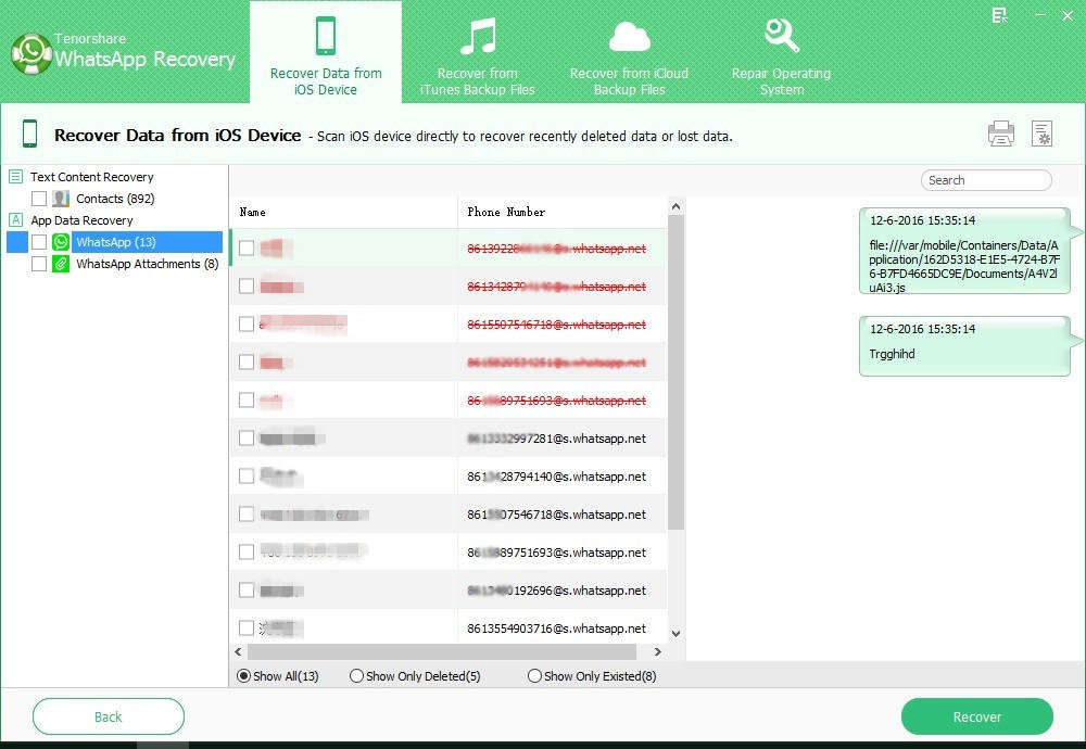 - Recupera cronologia delle chat e contatti di WhatsApp sia dai cellulari e sia dai file di backup;