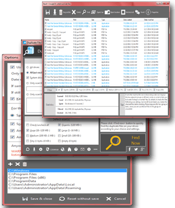 Ricercare ed Eliminare Duplicati con affidabilità del 100%Solo un programma veloce per trovare duplicati di file con 100% di risultati accurati che amerai!Caratteristiche principali:Confronta Contenut...