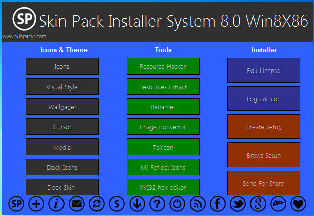 Skin Pack Installer System permette di andare a modificare molti aspetti grafici, grazie alla sezione Theme & Installaer e Tool and Extra e cambiare i programmi di default come il Media Player, Notepad e tanti altri con i nostri preferiti magari dalla grafica più accattivante.