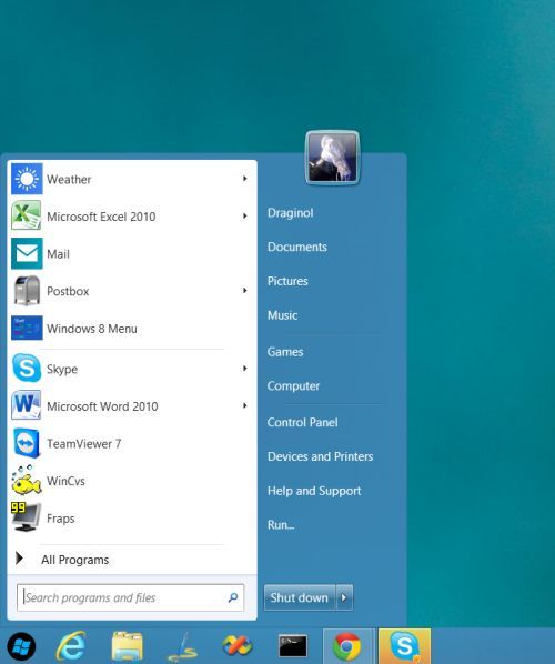 - Aggiunge il menu Start sulla barra delle applicazioni di Windows 8.