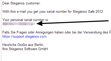 Ora potete effettuare il Download di Steganos Safe 13 e al primo avvio del software, inserire il codice di attivazione ricevuto via e-mail.