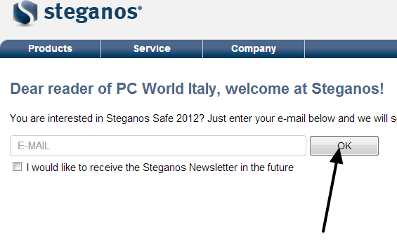 Per ottenere una licenza gratuita di Steganos Safe 13, andare in questa pagina e inserire la vostra e-mail.