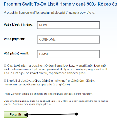 Per ottenere una licenza gratuita di Swift To-Do List 8 Home, andare in questa pagina e inserire il nome, il cognome e la vostra e-mail.
