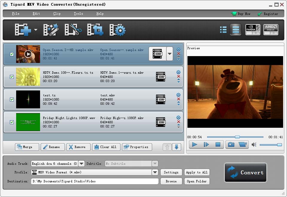 Tra la miriade di programmi disponibili per la conversione Video, Tipard MKV Video Converter si distingue dagli altri per la moltitudine di formati compatibili sia in Input che in Output e con i settaggi già preimpostati per alcuni tipi di devices come dispositivi portatili come iPhone 5, tutti gli iPad e iPod, Smartphone Android, PS3, PSP e molti altri.