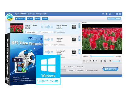 Tipard MP4 Video Converter è in grado di convertire i file video di qualsiasi formato in MP4 da riprodurre sui dispositivi mobili. Supporta la conversione di tutti i principali formati di file video (MOV, MPEG4, AVI, FLV, MKV, VOB, WTV, WMV) e video HD (HD TS, HD MP4, HD FLV, HD MOV, HD AVI, ecc) in MP4. Inoltre, fornisce profili di output predefiniti per dispositivi popolari come iPhone 5S/5C, iPad Mini 2, iPad Air, Samsung Galaxy S4, Samsung Galaxy Note/2/3, Samsung Galaxy Tab 2, ecc. Usandolo, potrete godervi facilmente qualsiasi video sui vostri dispositivi mobili.