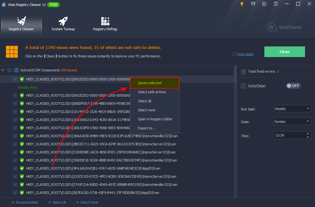 Se lo desideri, puoi correggere tutti i problemi automaticamente, tutti i cambiamenti al tuo sistema sono monitorati da Wise Registry Cleaner e possono essere risolti con pochi click del mouse, così puoi utilizzare Wise Registry Cleaner per risolvere il tutto.