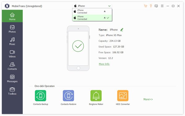 Apeaksoft MobieTrans è un programma per il trasferimento e gestione dati di iOS professionale che consente di trasferire iPhone iPhone, creare suonerie per iPhone e convertire le immagini HEIC con facilità.