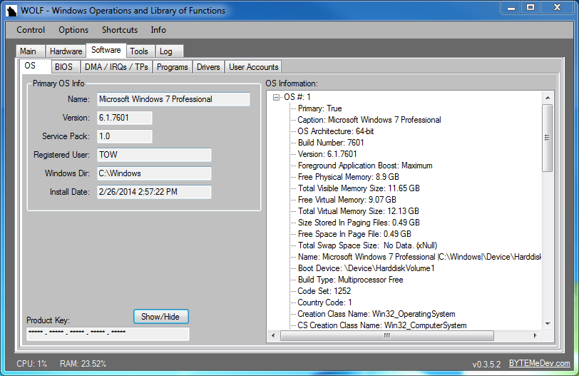 WOLF, disponibile gratuitamente ed in versione portable per Windows, permette di estrarre il Product Key di Windows 8 e Windows 8.1 da UEFI. Il funzionamento è semplice ma è necessario la presenza del pacchetto Framework .NET 4.5.1 (o versioni successive), infatti una volta avviato il seriale sarà visualizzato in basso a destra.