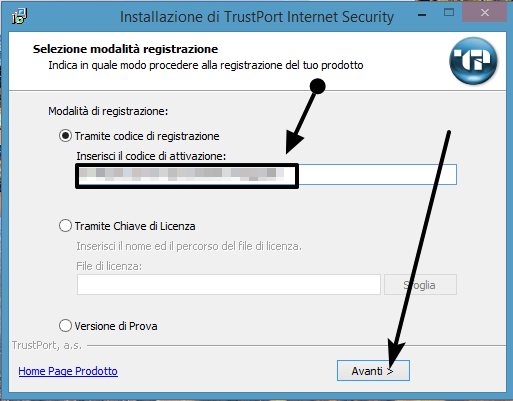 Alla fine dell'installazione, inserire il codice di attivazione ricevuto via e-mail.