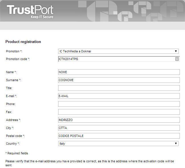 Per ottenere una licenza gratuita valida per 3 mesi, andare in questa pagina e inserire i dati richiesti. Nella sezione "Promotion code", inserire questo codice promozionale: ICTM2014TPIS