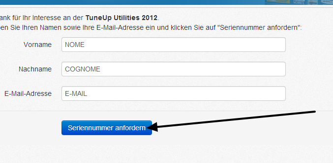 Per ottenere una licenza gratuita di TuneUp Utilities 2012, andare in questa pagina e inserire Il vostro nome, cognome e indirizzo e-mail.