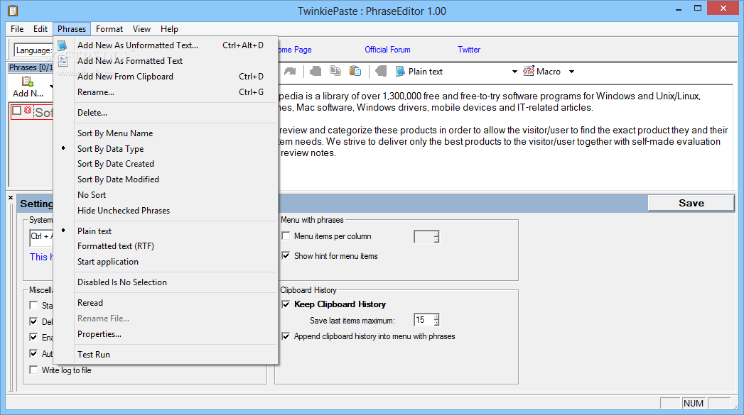TwinkiePaste è il programma per digitare testi, date, formule di saluto, risposte standard, URL di Internet, login, password e modelli di codice di uso comune in maniera rapida. Il programma ti aiuta a digitare rapidamente in quasi tutte le applicazioni, facendoti risparmiare tempo e aiutandoti ad evitare compiti di routine.