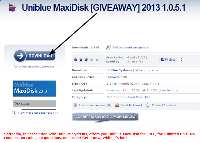 Sistema operativo supportato: Windows 8, Windows 7, Windows Vista e Windows XP.Per ottenere una copia gratuita di Uniblue MaxiDisk, andare in questa pagina e scaricare il software. Non è richiesto nessun codice di attivazione.